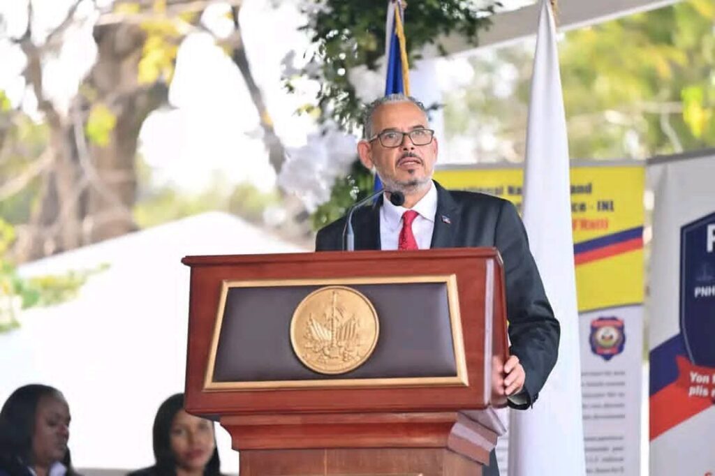 Entouré des plus hautes instances de l’État, notamment le coordonnateur du CPT Laurent Saint-Cyr, les conseillers-présidents Emmanuel Vertillaire et Frinel Joseph, le ministre de la Justice Me Patrick Pélissier, ainsi que le commandant en chef de la PNH Vladimir Paraison, le Premier ministre a durci le ton. En présence du secrétaire d’État à la Sécurité publique Mario Andrésol, du haut état-major des Forces armées d’Haïti et du corps diplomatique, il a martelé que seule une action étatique rigoureuse pourra empêcher l’effondrement définitif des institutions et restaurer l’ordre public.